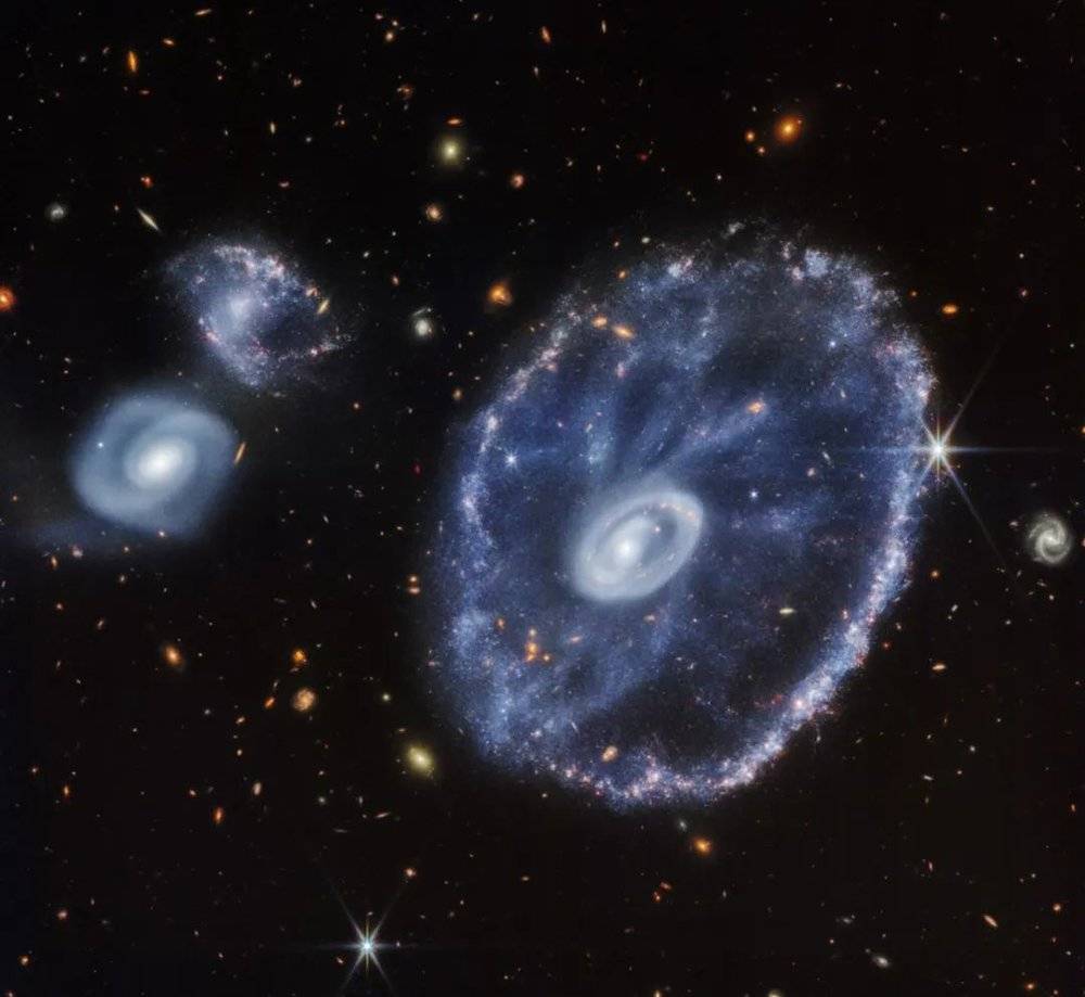韦布望远镜拍摄的图像提供了一个全新的视角,让我们看到了车轮星系数十亿年来的变化。